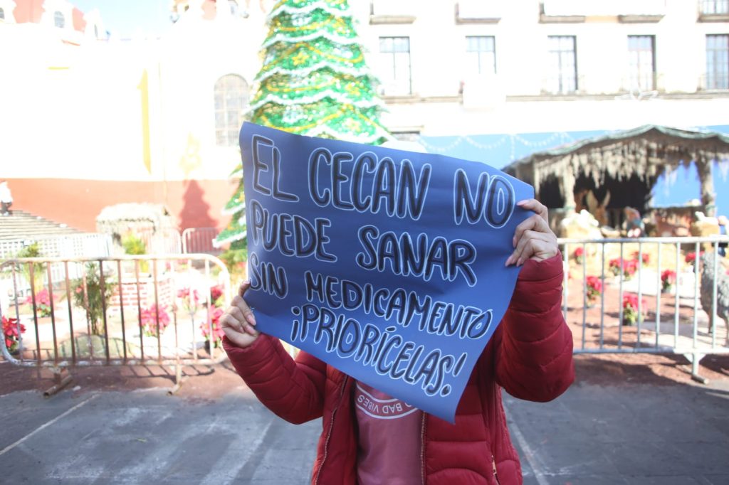 Una pareja de mujeres se manifestó en la Plaza Sebastián Lerdo de Tejada de esta capital para denunciar la falta de medicamentos en el Centro Estatal de Cancerología (CECAN), motivo por el cual su familiar Maximiliano San Gabriel Lobillo, quien fue diagnosticado con Leucemia Linfoblástica Aguda de Alto Riesgo, no ha recibido el tratamiento médico correspondientes.