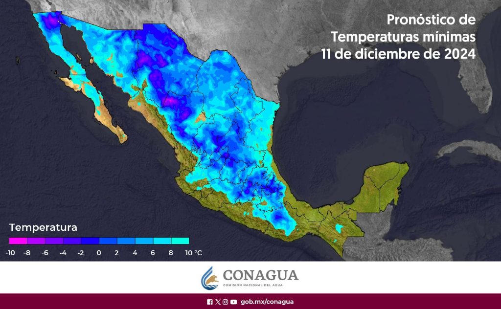 La masa de aire polar asociada al frente, originará descenso de temperatura en el noroeste, norte, noreste, oriente, centro y sureste del territorio nacional, así como en la península de Yucatán.