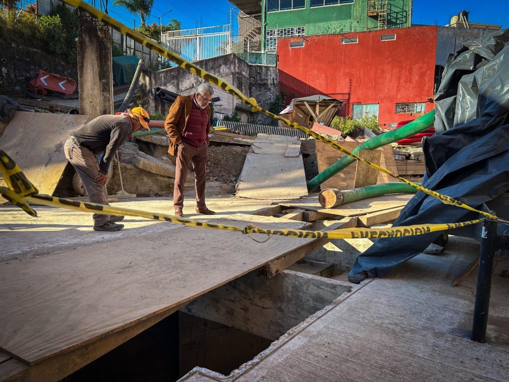 El presidente municipal de Xalapa, Alberto Islas Reyes, acudió este miércoles a la colonia Emiliano Zapata, con el fin de supervisar el avance que registra la construcción de un cárcamo de bombeo de aguas pluviales en el Andador Los Pinos.