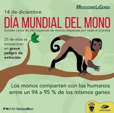 Compartiendo tantas cosas en común con los monos, deberíamos sentir mucha más empatía y celebrar su día, cuidarlos y respetarlos. Así que este 14 de diciembre, sube a las redes sociales la foto de un mono que te guste junto con un mensaje para protegerlos y la etiqueta #DíaMundialdelMono.