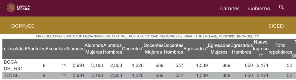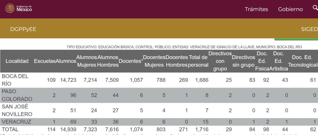 330 escuelas, en total, cuando en Boca del Río sólo hay 125 planteles de estos niveles: 114 de educación básica y 11 de bachilerato.