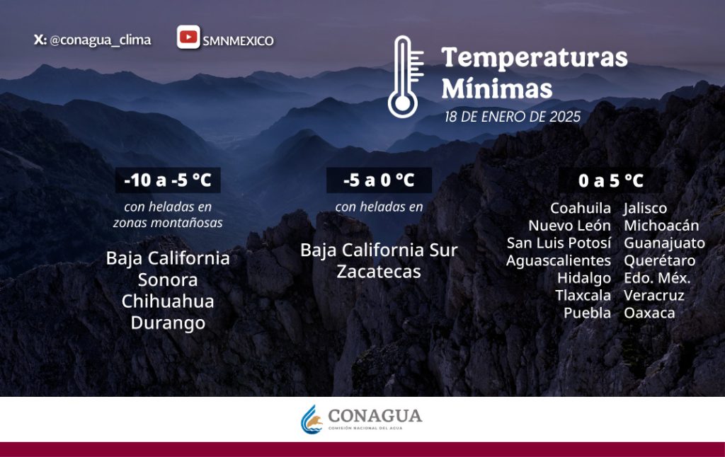 También vientos de 20 a 40 km/h y rachas de 50 a 70 km/h en Coahuila, Nuevo León, Tamaulipas, Zacatecas y San Luis Potosí.