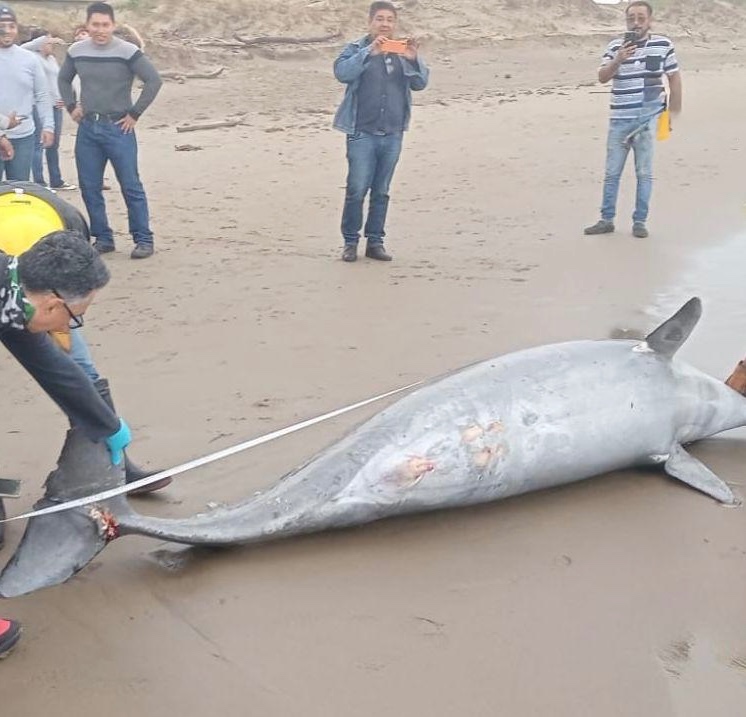 Delfín muerto de casi 3 metros en playa de Coatzacoalcos