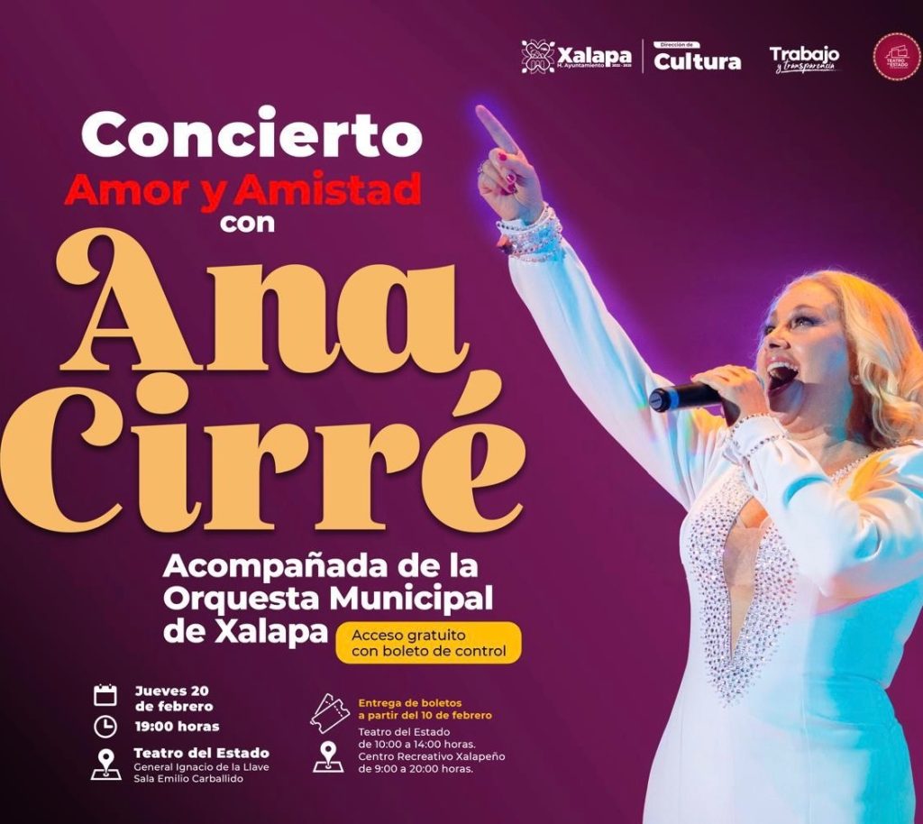 En el marco del mes del amor, el Ayuntamiento de Xalapa organiza diversas actividades, destacando el concierto de Ana Cirré, el próximo 20 de febrero en el Teatro del Estado “Gral. Ignacio de la Llave”. En el evento gratuito la artista estará acompañada por la Orquesta Municipal de Xalapa (OMX); conjuntamente presentarán los éxitos románticos […]
