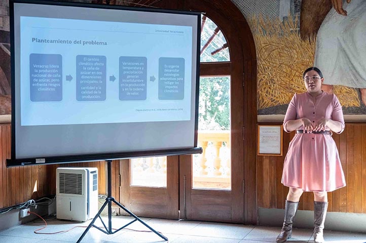 En la presentación de su investigación “Impacto económico del cambio climático en la industria azucarera de Veracruz: Un análisis de la variabilidad climática”, expuso que Veracruz es el principal productor de caña en México, contribuyendo con el 40% de la producción nacional, y que la industria es fundamental para el empleo rural en comunidades que dependen de este cultivo.