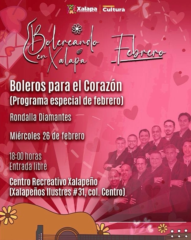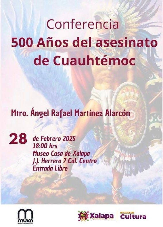 El 28 de febrero, en el Muxa, se ofrecerá la charla “500 años del asesinato de Cuauhtémoc”, con Ángel Rafael Martínez Alarcón, a las 18:00 horas. En el mismo horario, en el auditorio de la IMAC, la Banda Sinfónica del Gobierno del Estado de Veracruz presentará “Concierto al amor”.