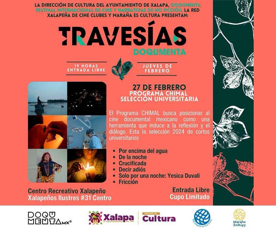 El Teatro J. J. Herrera será sede de la Muestra Proyección Escénica de la Academia Sanfilippo, a las 18:30 horas; además, la Red Xalapeña de Cine Clubes proyectará el Programa Chimal, Selección Universitaria, en el CRX, a las 19:00 horas.