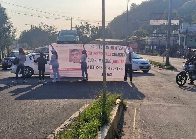 Familiares y amigos del menor de 13 años, Antonio Reyes Moguel, desaparecido el 27 de febrero pasado en Banderilla; bloquearon la carretera federal Xalapa-Perote, a la altura del municipio mencionado.