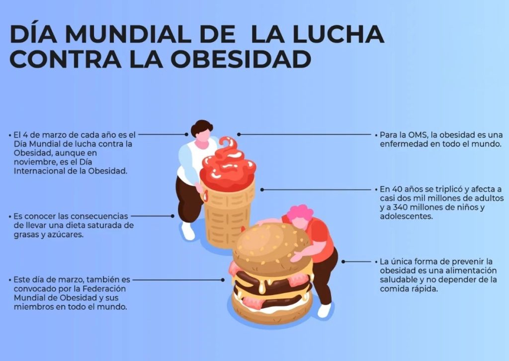 Cada 4 de marzo se celebra el Día Mundial contra la Obesidad. Esta fecha busca concienciar a las personas sobre el terrible daño que conlleva para el organismo una dieta alta en grasas y azúcares. Y fomentar una alimentación sana y hábitos saludables.