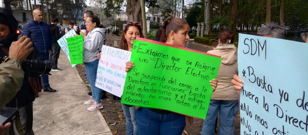Además, exigieron la destitución de la directora interina Reyna Rojas Alegría, por su trato despótico y no están de acuerdo con su forma de trabajar, al incurrir en acciones de hostigamiento en contra de las y los docentes, a quienes los ha removido de un puesto a otro y a medio ciclo escolar los han retirado de sus grupos.