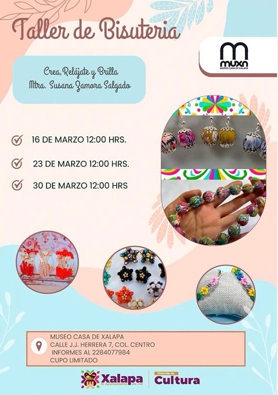 A las 12:00 horas, en el Muxa, continúa el taller de Bisutería de Susana Zamora Salgado.