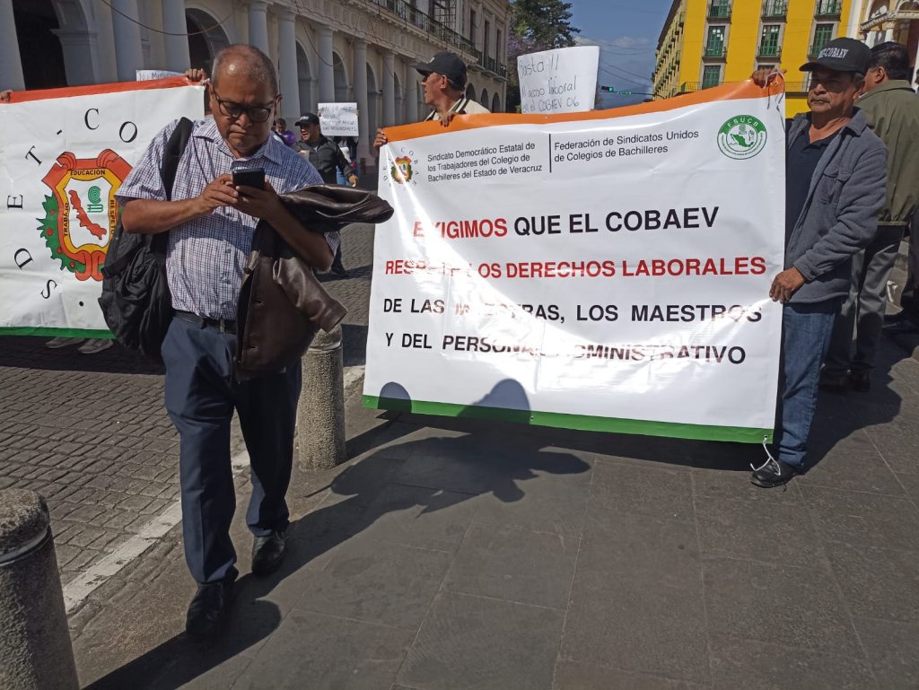 A decir del secretario de dicho sindicato dijo que en el COBAEV, es constante la corrupción, lo que predomina es eres mi amigo,eres mi conocido, no tienes alguien que quiera dar clases es el famoso dedazo, le estamos solicitando a las autoridades educativas que se cumplan con la convocatoria que publicó la SEP, los manifestantes de dicho sindicato, portan en sus manos cartulinas y lonas con varias consignas a su petición.