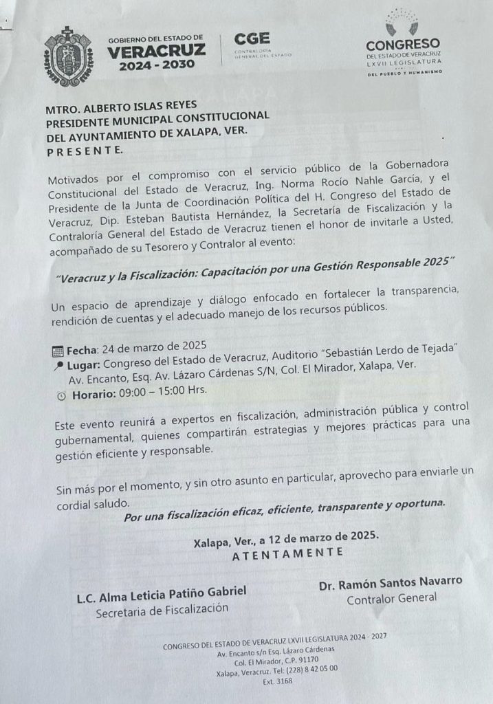 Como parte de su responsabilidad como Alcalde y en cumplimiento al compromiso del Ayuntamiento con la rendición de cuentas, la transparencia y el adecuado manejo de los recursos públicos, este lunes el presidente municipal Alberto Islas Reyes asistió al curso «Veracruz y la fiscalización: Capacitación para una gestión responsable 2025».