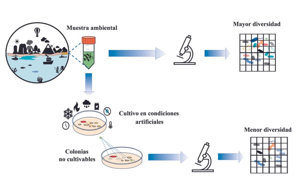 Como nuestros lectores podrán notar, muchas condiciones y señales no pueden replicarse fácilmente en el laboratorio. Y a pesar de comprender algunos de los mecanismos de interacción microbiana en su entorno natural, todavía existe un vasto terreno de conocimiento por explorar que impide actualmente cultivar cualquier microorganismo en laboratorio. Entonces, ¿cómo podemos reconocer y estudiar experimentalmente estos microorganismos?