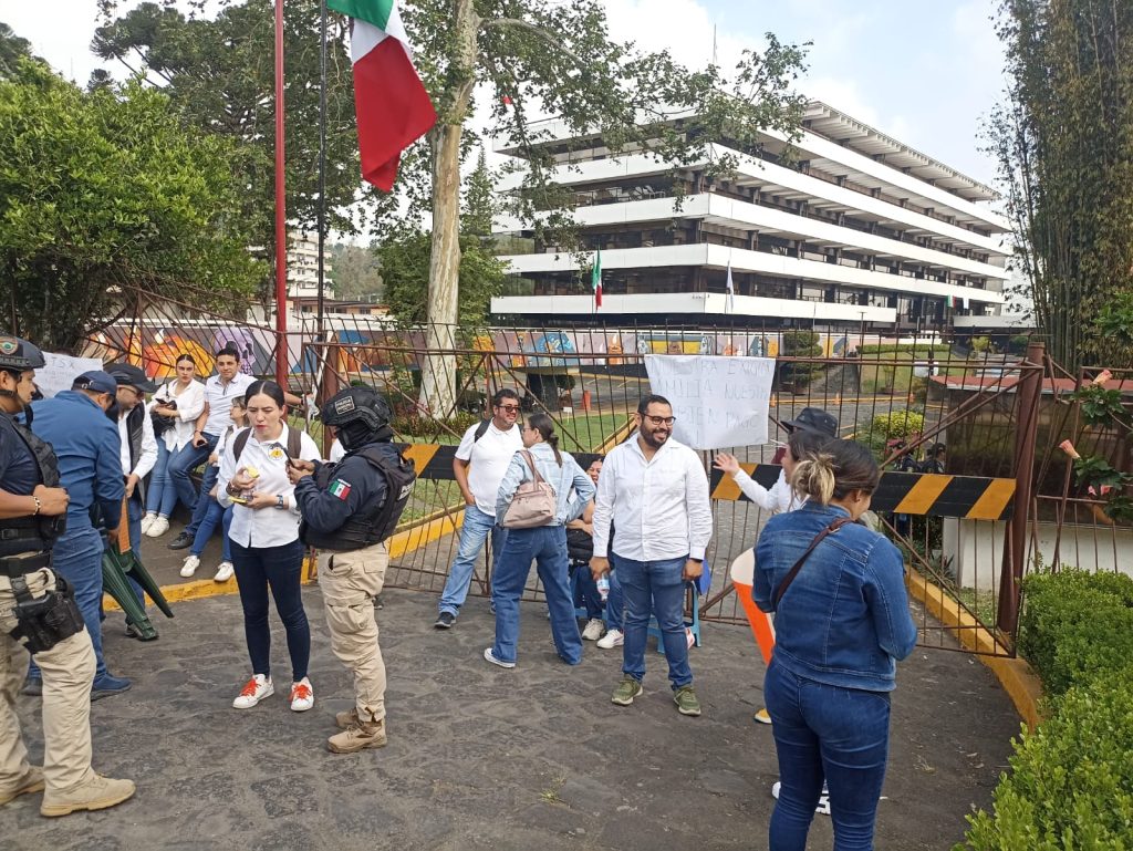 A la protesta tambien se sumaron los agremiados del Sindicato Unificador de Trabajadores al Servicio del Instituto Tecnológico de Estudios Superiores de Xalapa, que también resultaron afectados por la medida adoptada.