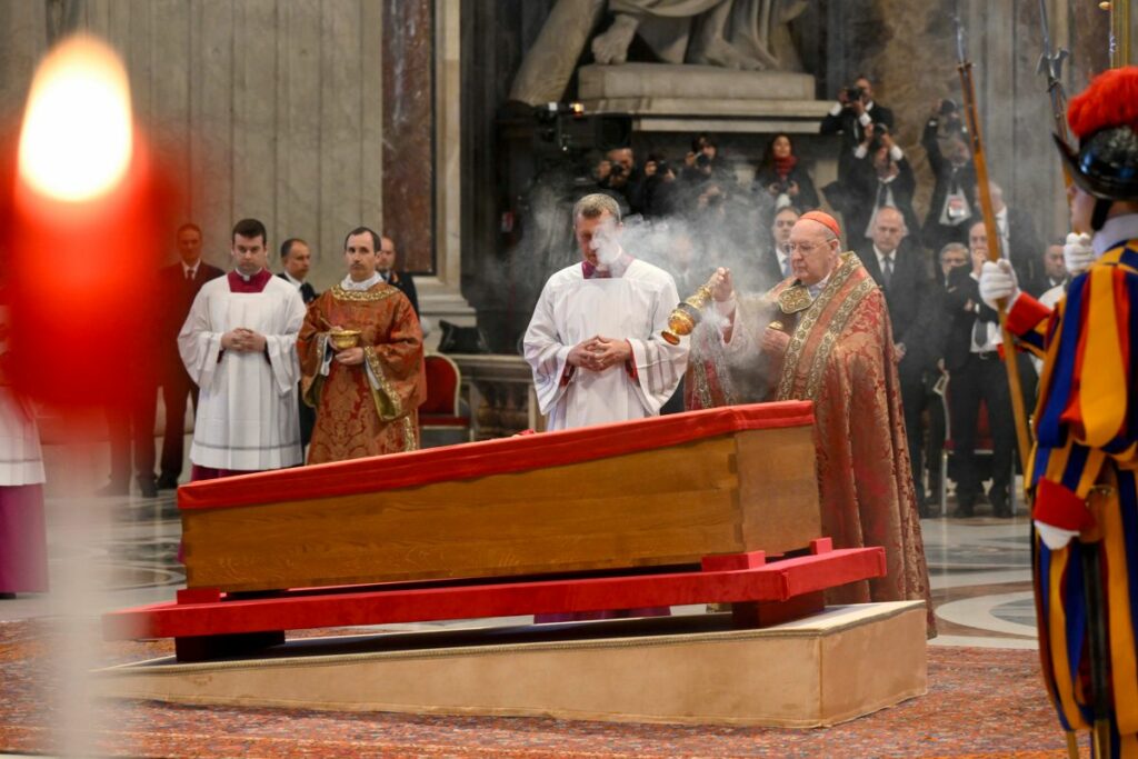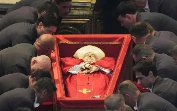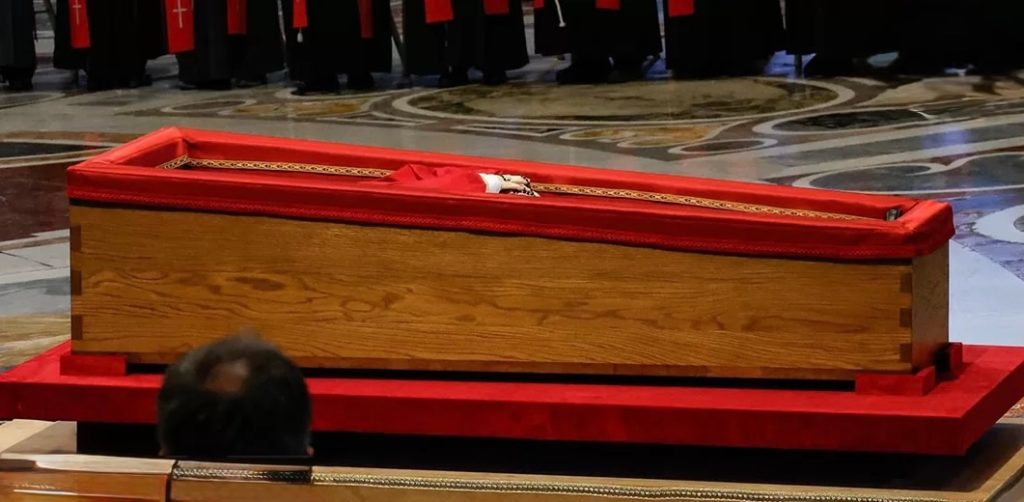 Es una novedad introducida por Francisco, que quiso establecer un ritual funerario más sencillo y decidió que el ataúd no estuviera en un catafalco como ocurrió con Juan Pablo II en 2005 y Benedicto XVI en 2023.