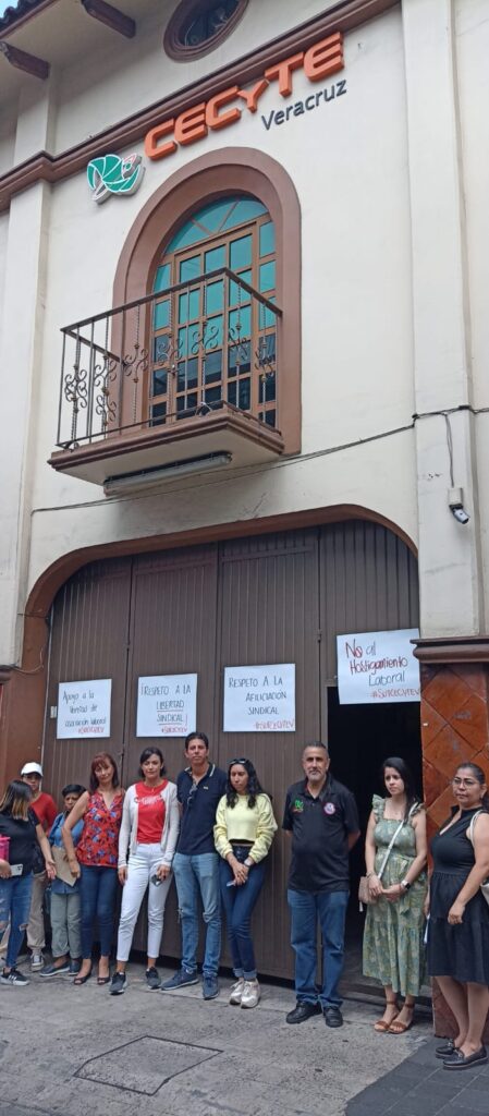 Agremiados del Sindicato Único de Trabajadores del Colegio de Estudios Científicos y Tecnológicos del Estado de Veracruz (SUTCECyTEV) tomaron las oficinas de la Dirección General de este subsistema de educación media superior, en protesta por el despido de un trabajador que recientemente se afilió a esta organización sindical.