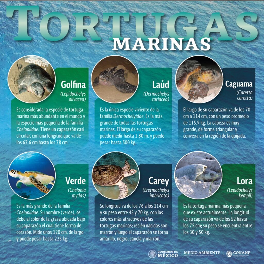 Son uno de los animales más antiguos del planeta (160 a 180 millones de años). Actualmente existen siete especies de tortugas marinas, seis de las cuales se encuentran en peligro de extinción: