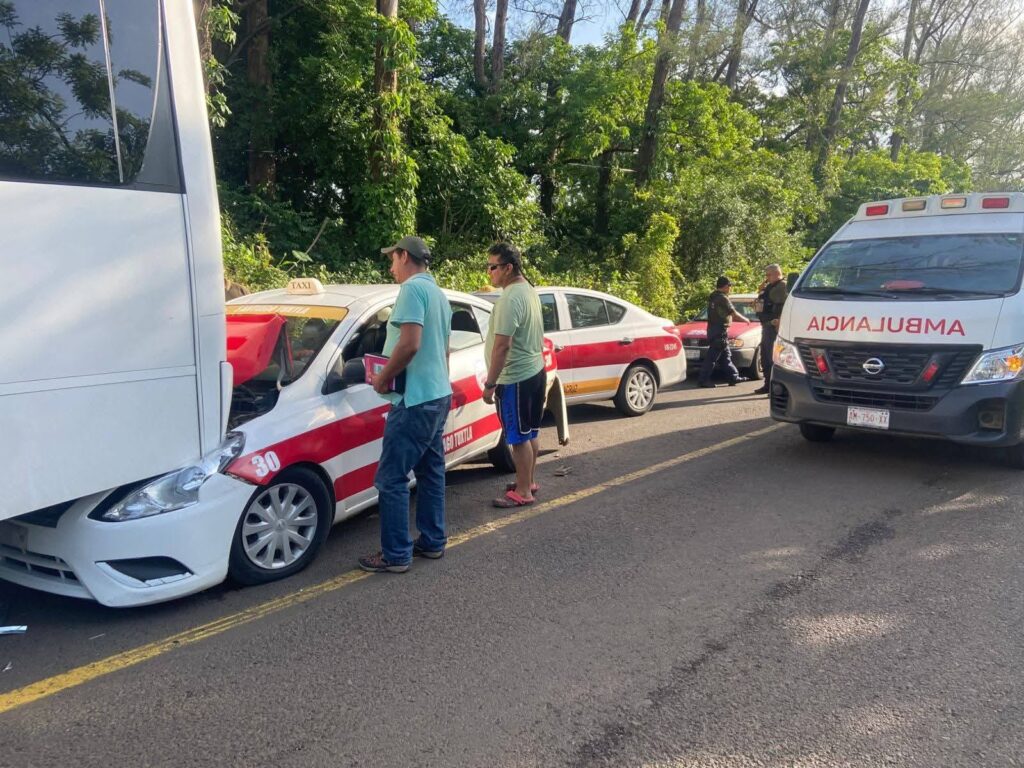 En el percance se vieron involucrados un microbús de la línea *TRS con número económico 5329, un taxi local de Santiago Tuxtla con número 30, y un taxi foráneo de Veracruz con número VB-2245, los cuales, colisionaron en carambola.