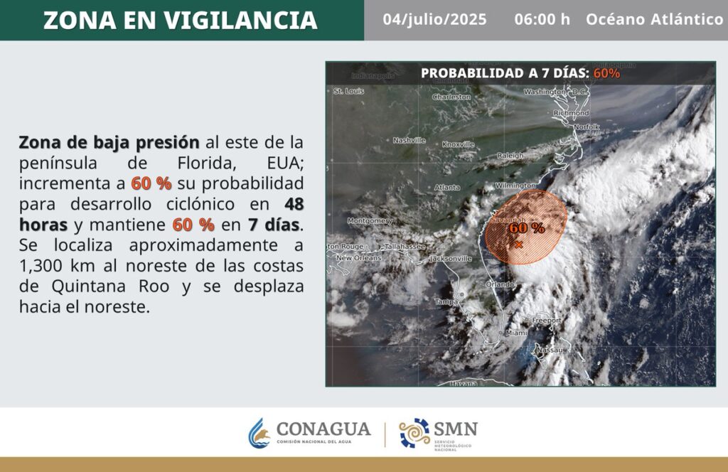 Lo anterior producirá lluvias puntuales fuertes en Chiapas y Oaxaca; y lluvias con intervalos de chubascos en Quintana Roo, Yucatán, Campeche y sur de Veracruz, todas con descargas eléctricas.