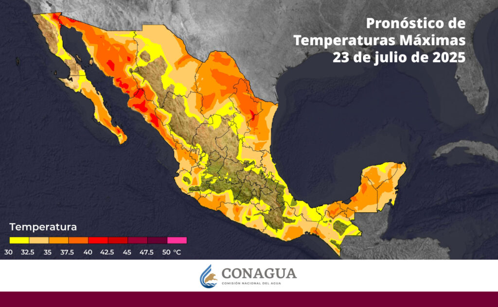 Las temperaturas máximas irán de 40 a 45 °C en Baja California (noreste), Baja California Sur (sur), Sonora (centro y sur), Chihuahua (suroeste) y Sinaloa (norte y centro).