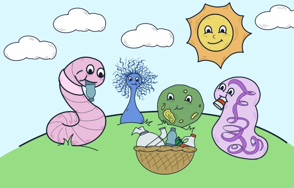 Los principales actores en la degradación de plásticos son los microorganismos, ellos tienden a colonizar la superficie, producir enzimas que cortan la molécula del plástico en moléculas más pequeñas, y utilizar estas como alimento para producir energía.
