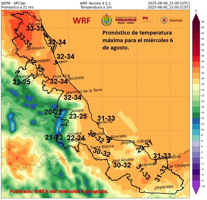 32.7/24.2 en Boca del Río.