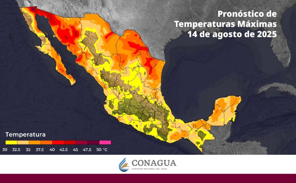 Las máximas irán de 40 a 45 °C en Baja California Sur (centro), Sonora, Sinaloa (norte), Chihuahua (suroeste y noreste), Coahuila (noreste), Nuevo León (norte y este) y Tamaulipas (oeste y noroeste).