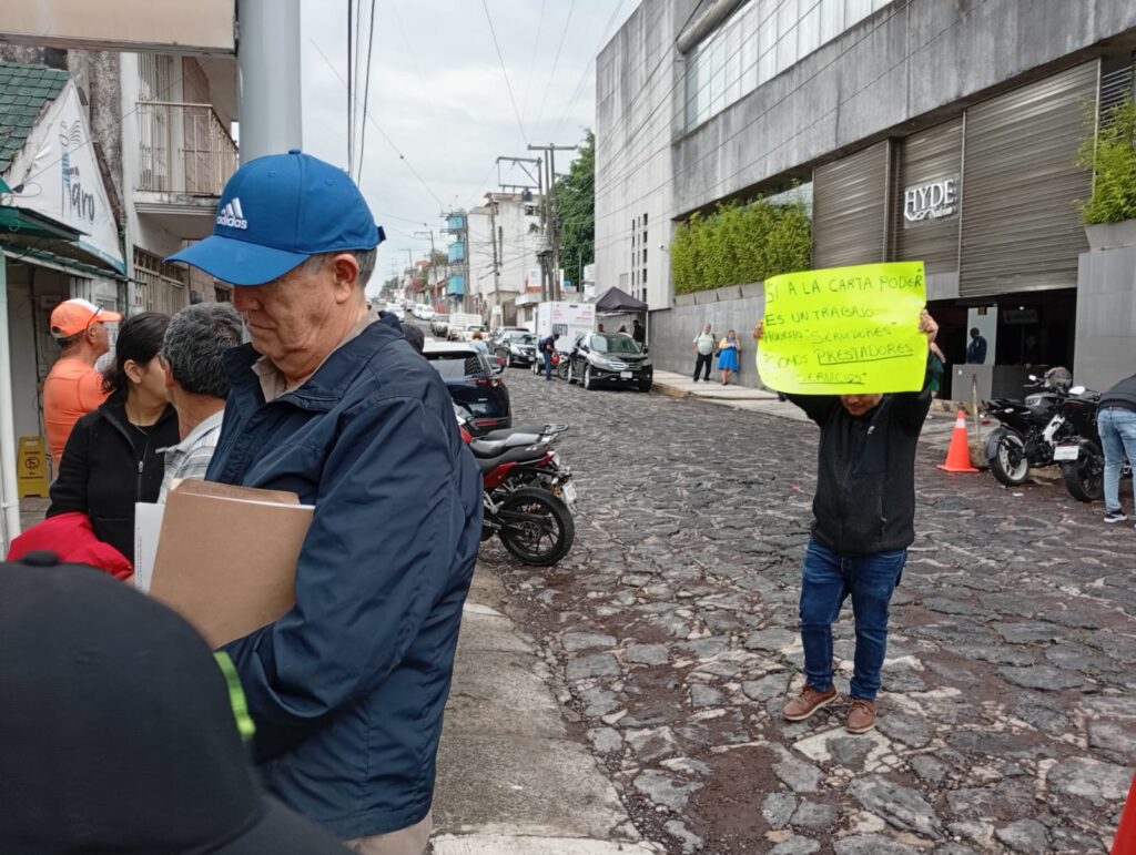 Por tal motivo se manifestaron frente a las oficinas de esta dependencia, dependiente de la Secretaría de Finanzas y Planeación (Sefiplan), ubicadas en las calles de Santiago Bonilla casi esquina con Jesús Reyes Heroles, en protesta por las decisiones de la Jefa de dicha oficina.