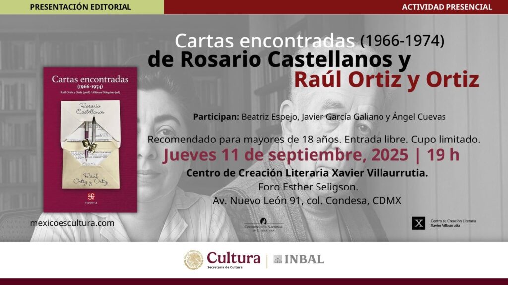 El libro Cartas encontradas (1966-1974), de Rosario Castellanos y Raúl Ortiz y Ortiz, reúne el amplio intercambio epistolar que sostuvieron en vida, ofreciendo un testimonio íntimo y conmovedor de la estrecha amistad entre la poeta, cuentista, novelista, ensayista, feminista y diplomática (1925-1974) y el políglota, traductor y especialista en música, literatura, cine y teatro (1931-2016).
