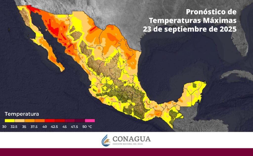 Las temperaturas máximas irán de 40 a 45 °C en Baja California (noreste), Sonora (oeste) y Chihuahua (noreste).