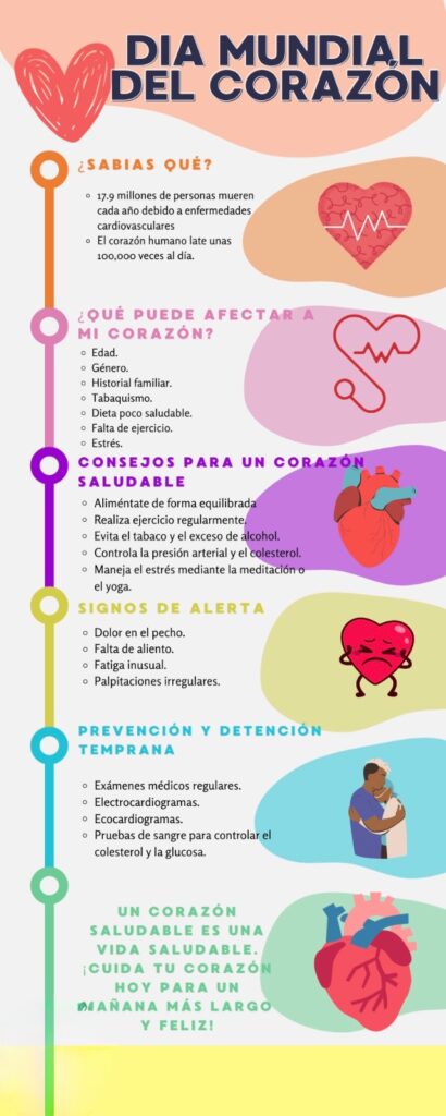 El Día Mundial del Corazón se celebra el 29 de septiembre, y se hace desde que en el año 2000 la Federación Mundial del Corazón, con el apoyo de la Organización Mundial de la Salud (OMS) designara este día, con el objetivo de concienciar sobre las enfermedades cardiovasculares, su prevención, control y tratamiento.