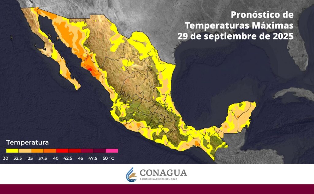 Apunta que continuará ambiente cálido a caluroso por la tarde sobre la mayor parte de México con temperaturas de 35 a 40 °C en B. California, B. California Sur, Sonora, Jalisco, Colima, Michoacán y Oaxaca, pudiendo superar los 40 °C en Sinaloa.
