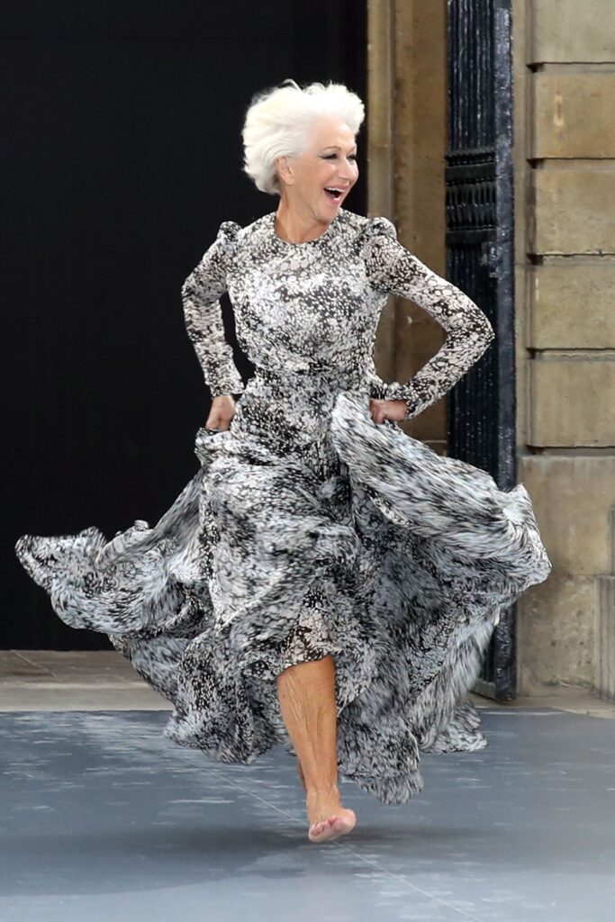 En su clara apuesta por conectar con mujeres de todas las edades y que estas se sientan siempre bellas y poderosas, L’Oréal Paris fichó a Helen Mirren cuando tenía 70 años. «Fue una gran sorpresa», ha contado la intérprete. Una década después, siguen colaborando en ocasiones especiales como el Festival de cine de Cannes, y también en campañas de publicidad: Helen es imagen de la línea Age Perfect Golden Age junto a Andie Macdowell (67 años), quien también ha participado en este nuevo desfile.