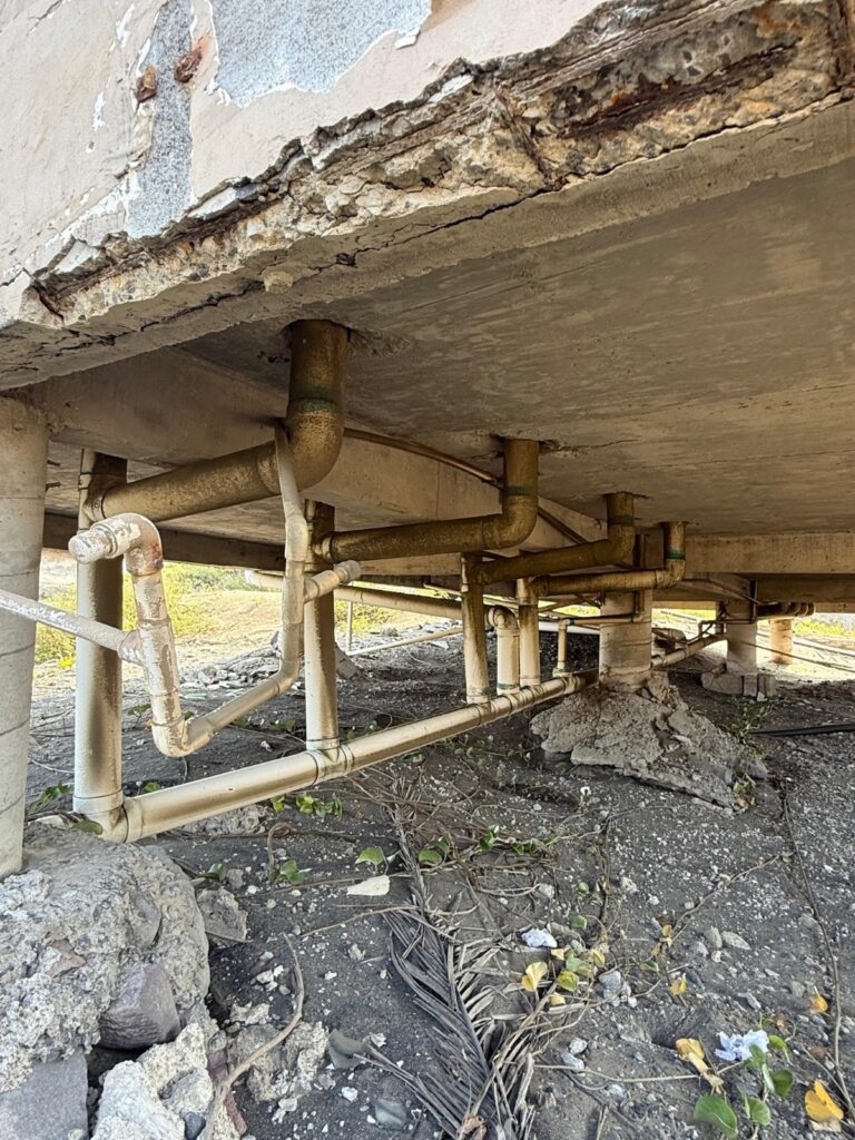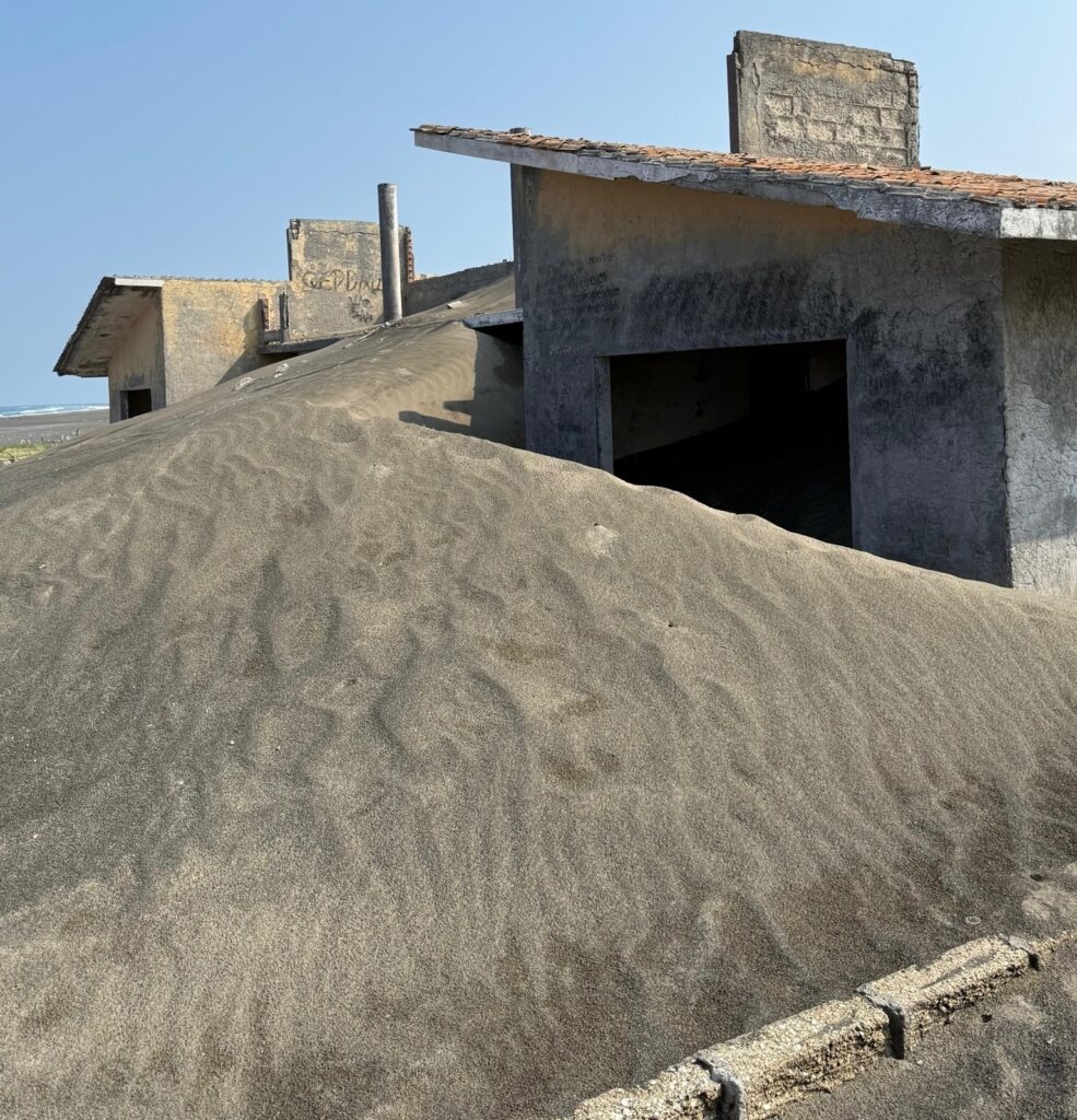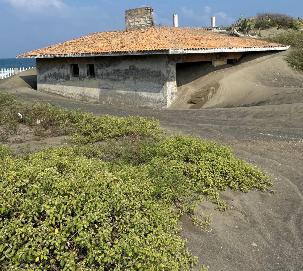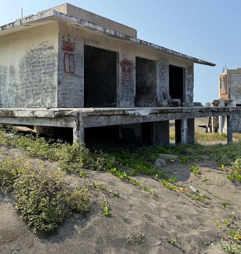 Signos claros de paredes y columnas cuarteadas, con varillas oxidadas por el salitre; destrucción total y saqueo; vegetación propia del lugar; y, algunas casas repletas de arena es lo que propios y extraños al llegar aquí, pueden observar del fallido proyecto.