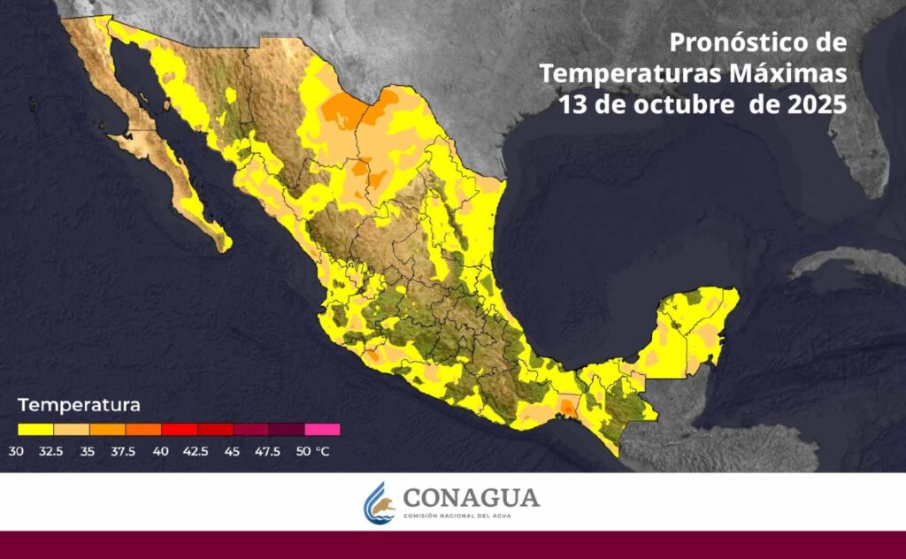 Las temperaturas máximas irán de 35 a 40 °C en Chihuahua, Coahuila, Nuevo León, Tamaulipas, Durango (noreste), Sinaloa y Oaxaca.