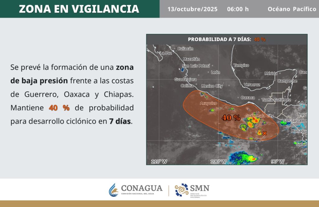Espera canales de baja presión en el oriente, occidente, sur y sureste del país, en combinación con desprendimientos nubosos de la vaguada monzónica que se extenderá en costas del Pacífico Sur mexicano.