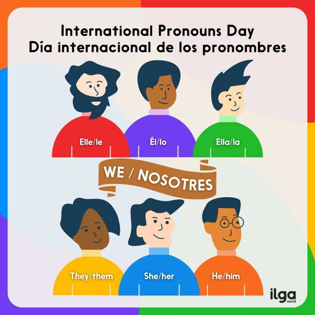 El Día Internacional de los Pronombres es un evento anual creado con la finalidad de compartir, respetar y educar a las personas de todo el mundo sobre el uso adecuado de los pronombres personales en tercera persona, utilizados para describir a un individuo cuando se habla de ellos.