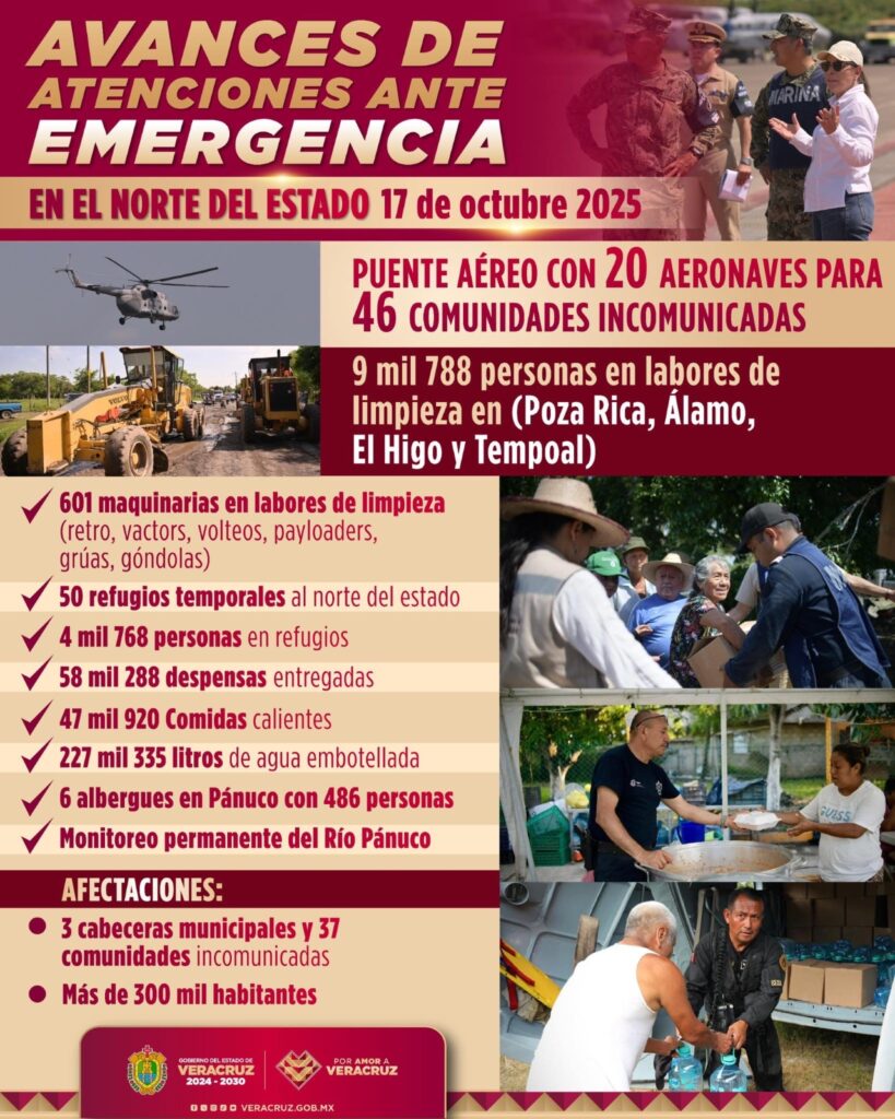 Dice el cartel que hay 9 mil 788 personas en labores de limpieza en 4 ciudades: Poza Rica, Álamo, El Higo y Temporal. En los demás lugares, no hay limpieza, al menos no por parte del gobierno del estado.