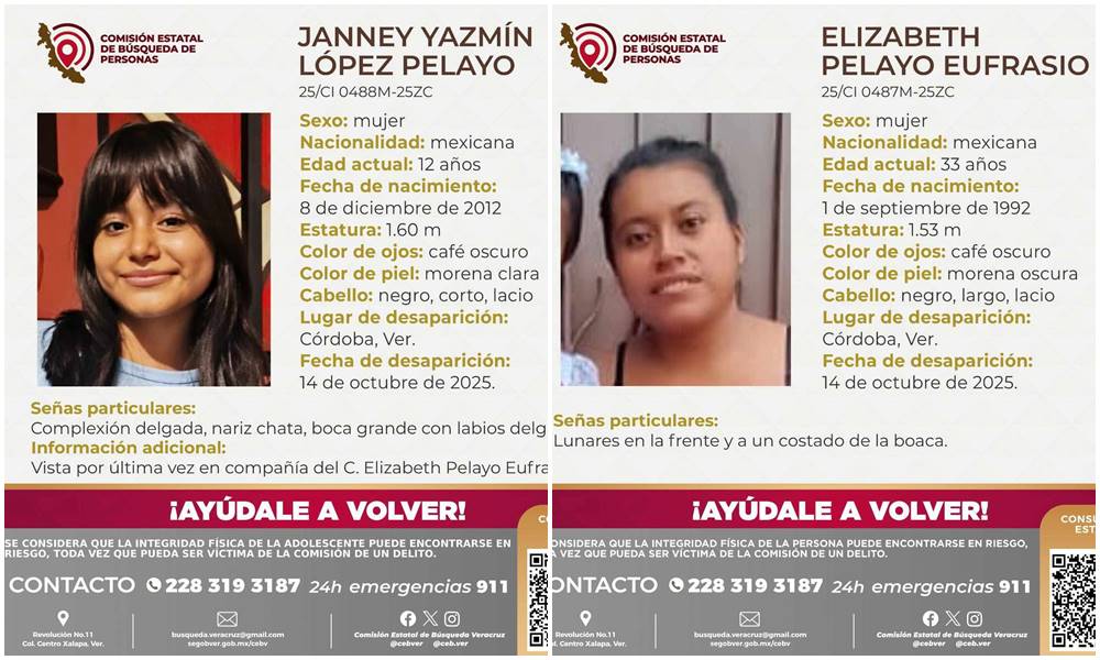 Córdoba, Ver.– La preocupación crece entre familiares y vecinos por la desaparición de Elizabeth Pelayo Eufrasio, de 33 años, y su hija Janney Yazmín López Pelayo, de 12 años.Fueron vistas por última vez el pasado martes 14 cuando salieron de su domicilio rumbo a una telesecundaria en la unidad habitacional Arboledas, sin que hasta ahora […]
