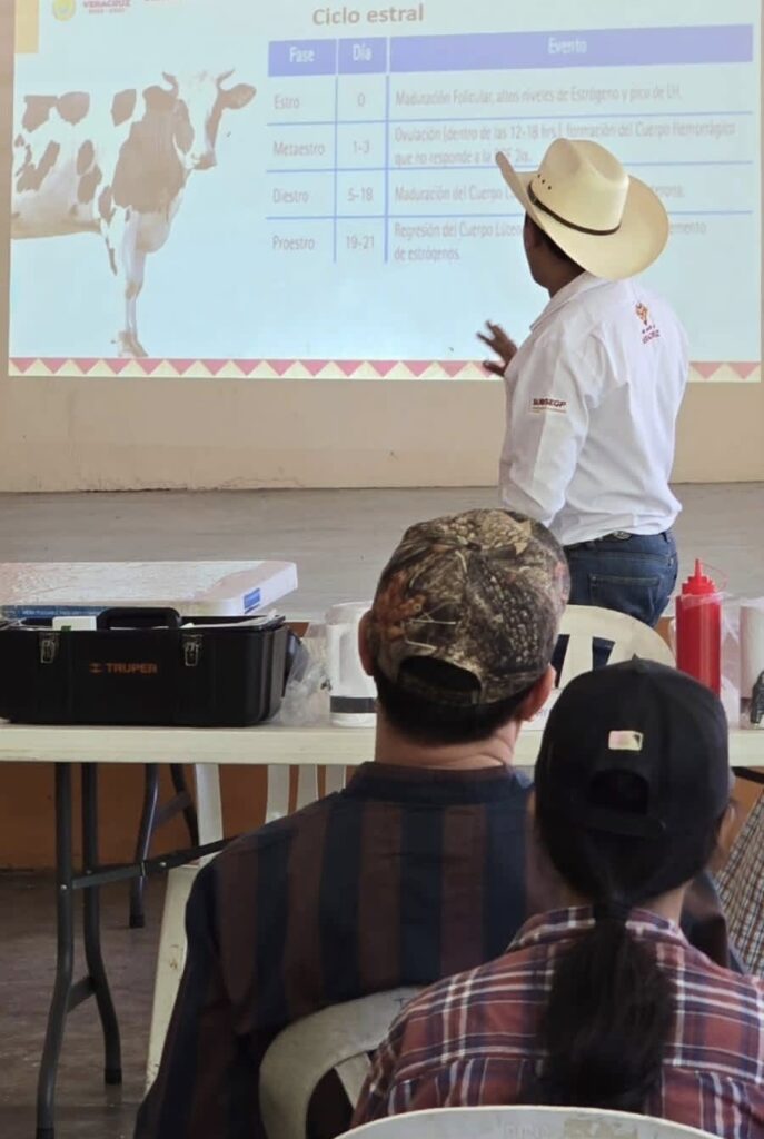Tantima, Ver.- Se llevó a cabo la Capacitación en Inseminación Artificial, Diagnóstico de Gestación y Mejoramiento Genético en Ganado Bovino, con el objetivo de favorecer las capacidades técnicas de los productores pecuarios del estado de Veracruz y promover una ganadería mas productiva y sostenible.