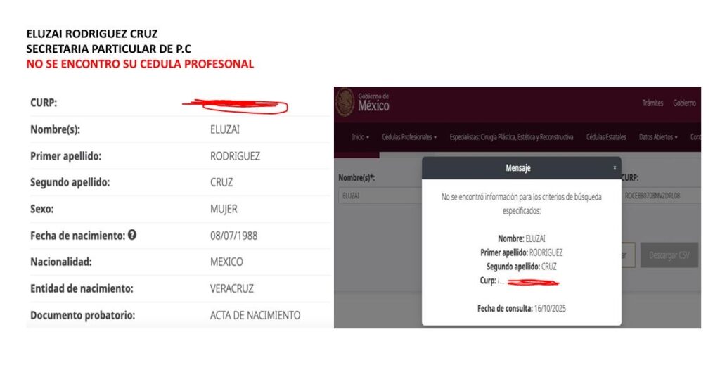 Eluzai Rodríguez Cruz, Secretaria particular de la titular de Protección Civil, es de las que no aparecen en el registro nacional de profesionistas, por carecer de cédula profesional.