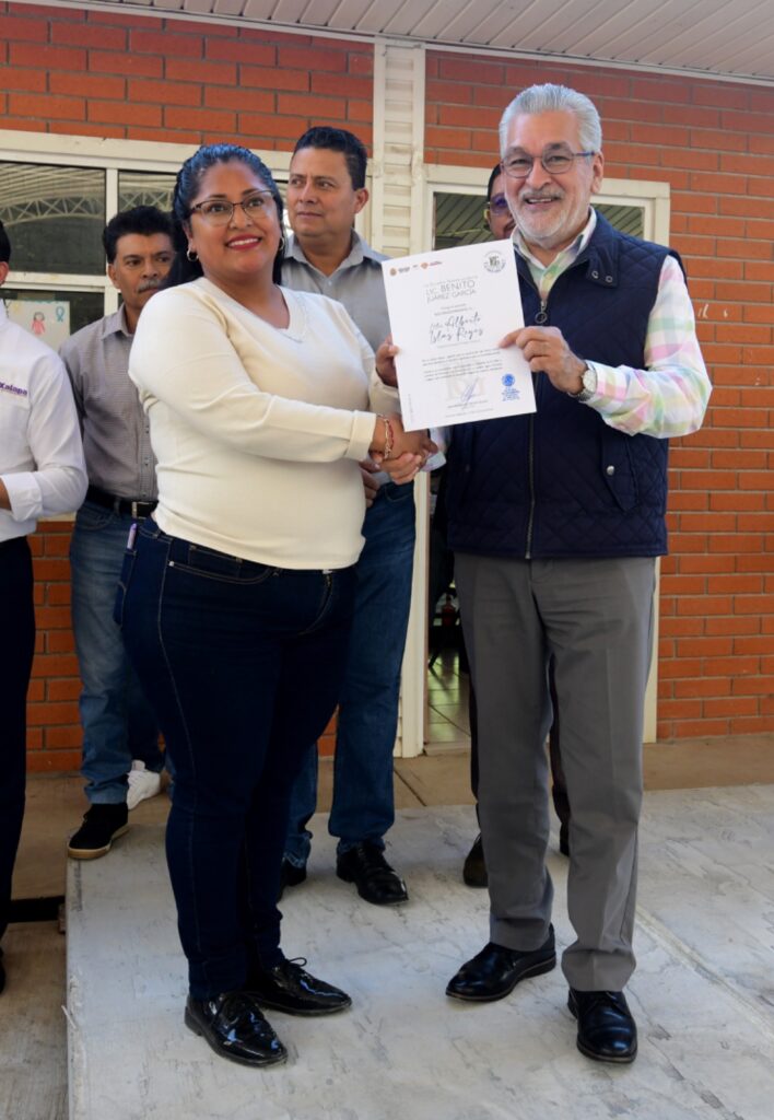 Entrega Alberto Islas domo en telesecundaria de El Tronconal, en Xalapa
