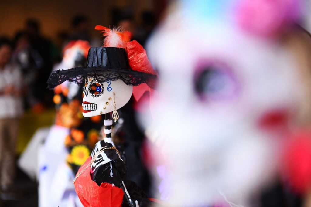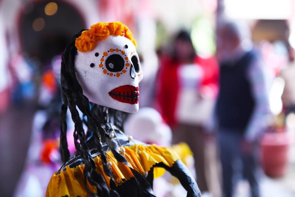 La muestra comprende más de 100 catrinas elaboradas con materiales reciclados y técnicas artísticas diversas, las cuales fueron realizadas por quienes participaron en el Taller de Catrinas 2025.