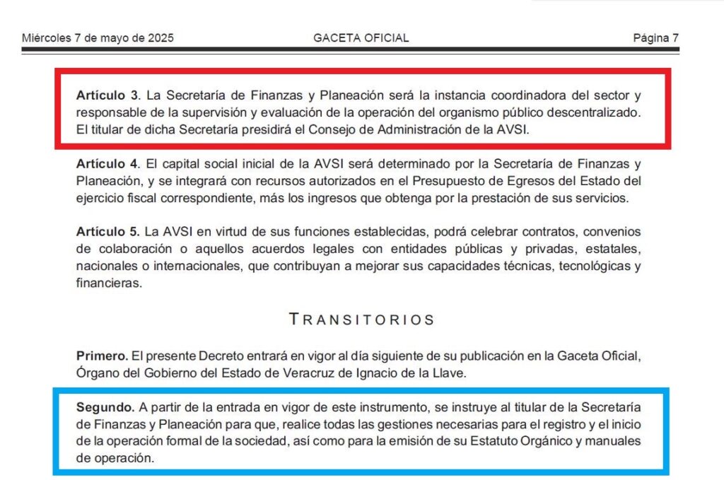 “Estado que guardan los trámites para el registro y autorización de funcionamiento de la Aseguradora Veracruzana de Servicios Integrales, aprobada por decreto publicado el 7 de mayo de 2025 en la Gaceta Oficial del gobierno del estado de Veracruz, número extraordinario 182”.