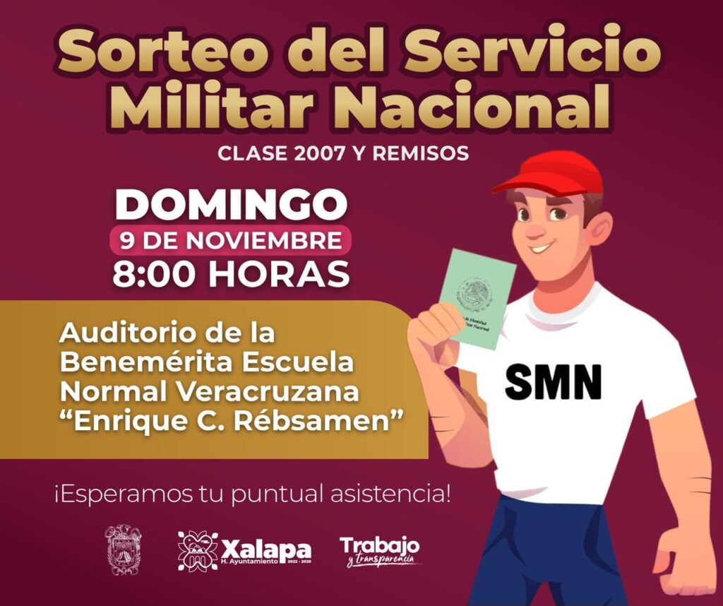 1 Por FRANCO R. El domingo 9 de noviembre, a las 8:00 horas, se llevará a cabo el Sorteo del Servicio Militar Nacional para Jóvenes de la Clase 2007 y Personal Remiso, por lo que se recuerda a quienes participaron en la Fase de Alistamiento, que deben presentarse a este evento, que se realizará en […]