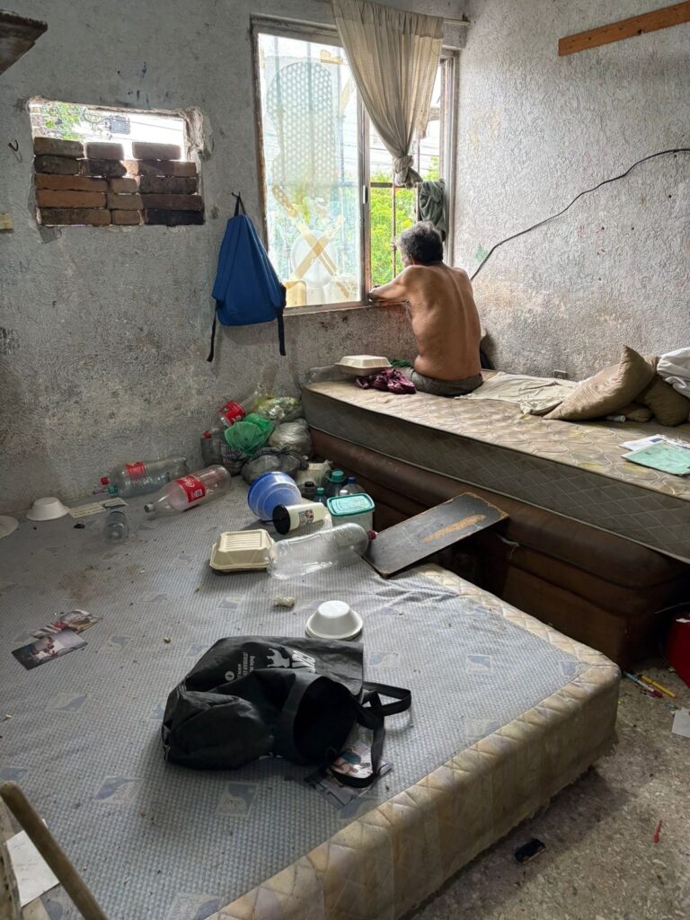La maleza, la basura, los desechos orgánicos y la falta de asepsia mantienen a don Isaías semidesnudo, con llagas en el cuerpo, sin agua para beber y colgado de la ventana del primer piso de su casa del Infonavit.