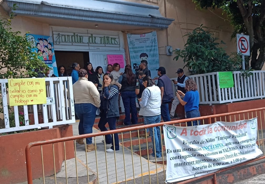Por descuentos protestan docentes del Jardín de Niños “Enrique Pestalozzi”