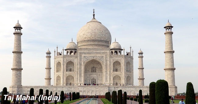 India: Este país asiático, rodeado de misticismo y espiritualidad, posee el famoso mausoleo conocido como Taj Mahal, el Templo del Sol o las famosas Grutas de Ajanta.