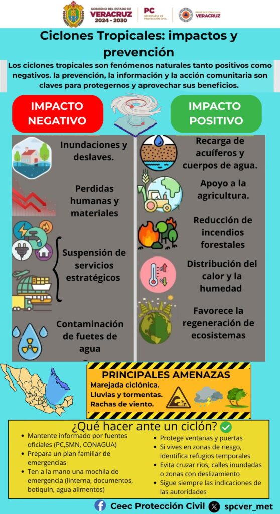 Dichos sistemas originarán lluvias y chubascos con descargas eléctricas en el occidente, centro, sur y sureste del territorio nacional, incluida la península de Yucatán, con lluvias puntuales fuertes en Chiapas (centro y sur).